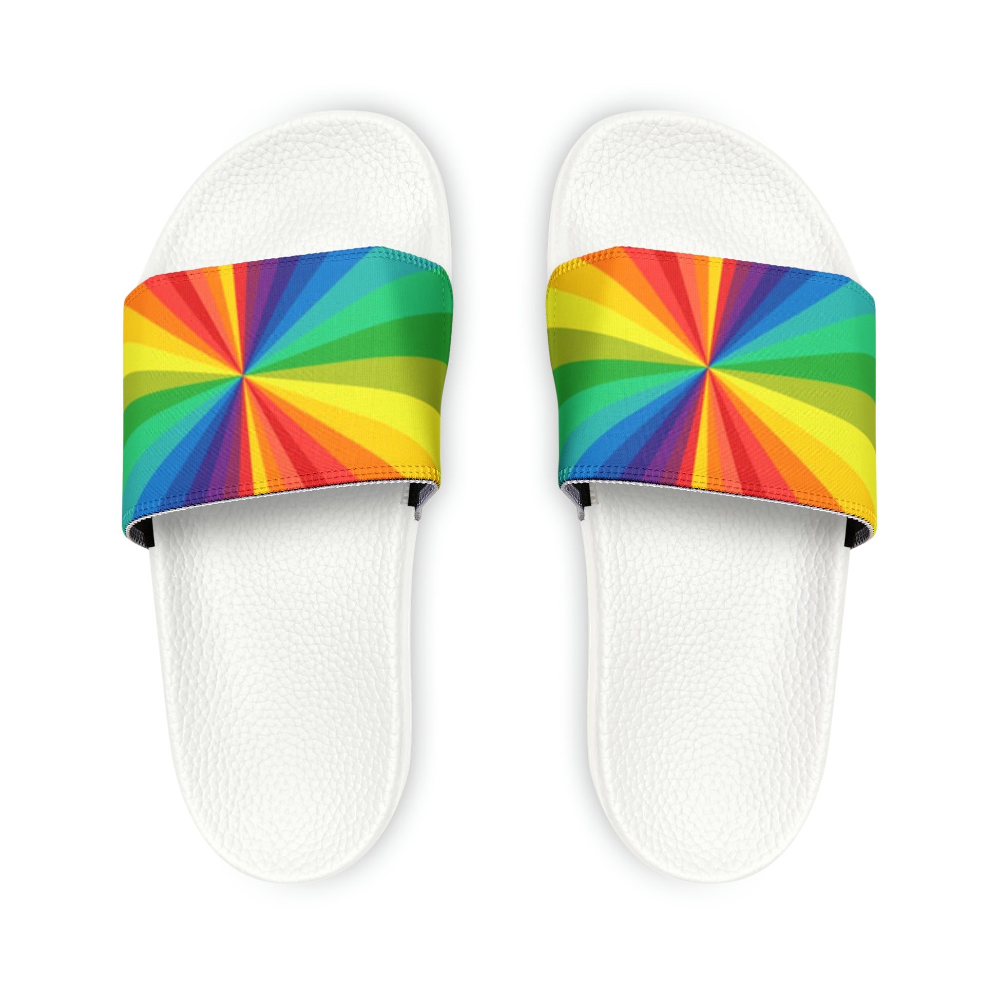 Take on the summer heat with style thanks to these rainbow slide sandals for women. Made with PU outsoles and an edge-to-edge strap customization that will never peel, crack, or fade, these sandals feature a high-end quality factor comparable to household-name brands. The straps are made with neoprene and polyester to avoid chafing while the ergonomic sole keeps discomfort at bay.